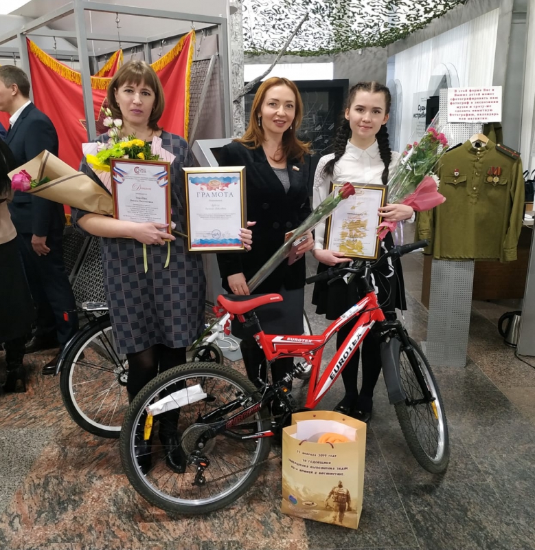 Петр Борисенко, учащийся 8 класса МОУ «СОШ села Данилкино Балашовского района», и Оксана Дубяга из 9В класса МОУ «СОШ №103» Саратова, занявшие первое и второе место в масштабах страны, получили в подарок от облдепа спортивные велосипеды.