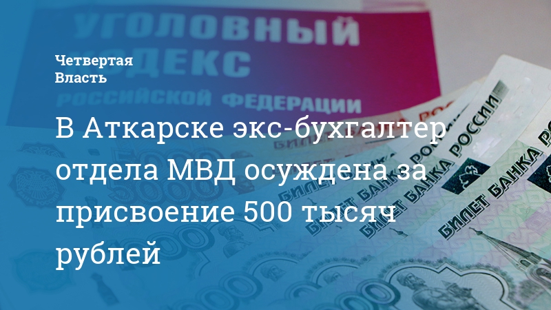 В Аткарске экс-бухгалтер отдела МВД осуждена за присвоение 500 тысяч рублей