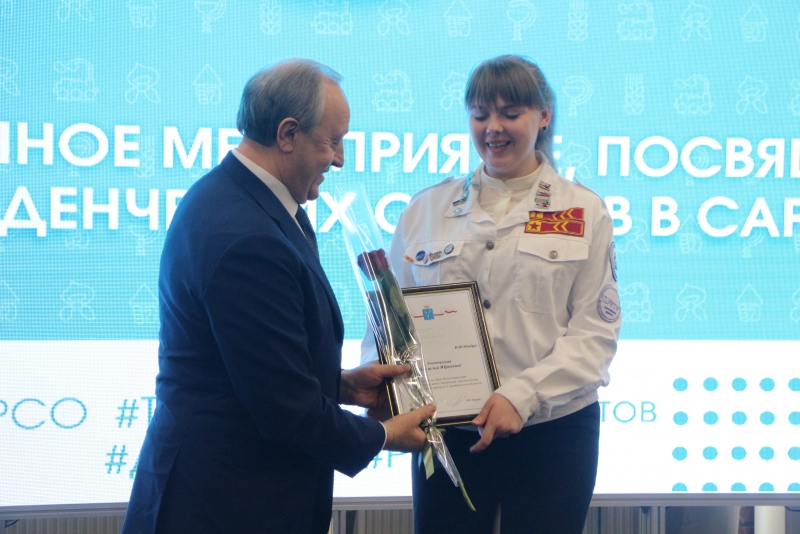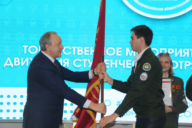 Губернатора Саратовской области Валерия Радаева наградили бойцовкой студенческих отрядов. Это произошло сегодня во время его встречи со студентами в честь 60-летия этого движения.