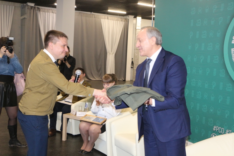Губернатор посмотрел видеовизитки студотряда каждого вуза, после чего наградил лучших бойцов грамотами и благодарностями. В ответ руководитель региональной общественной организации «Студенческие отряды» Антон Головченко подарил Радаеву один из главных атрибутов – бойцовку (куртку, куда крепят значки) с вышивкой на груди «губернатор».
