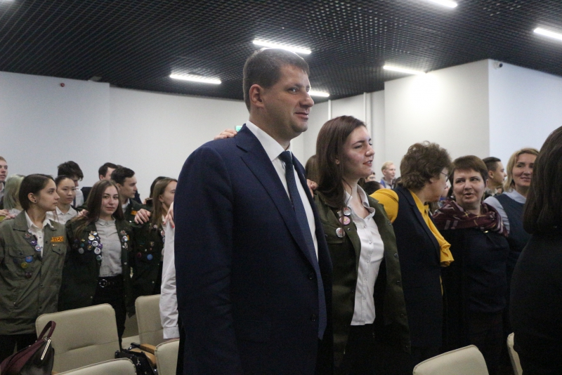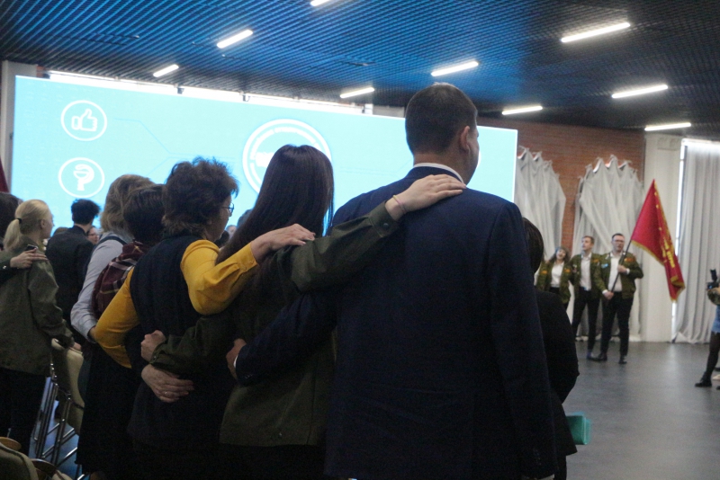 Затем студотрядовцы хором спели под гитару песню Александр Градского «Яростный студотряд». Ребята вместе с Валерием Радаевым и другими почетными гостями слушали композицию стоя. Министр молодежной политики и спорта Александр Абросимов не удержался и покачивался в обнимку со студентами.