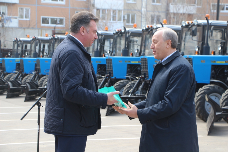 Сегодня коммунальщики получили ключи от 18 тракторов «Беларус». Всего же город получит 30 таких машин. Технику можно использовать как зимой, так и летом, используя разные насадки.