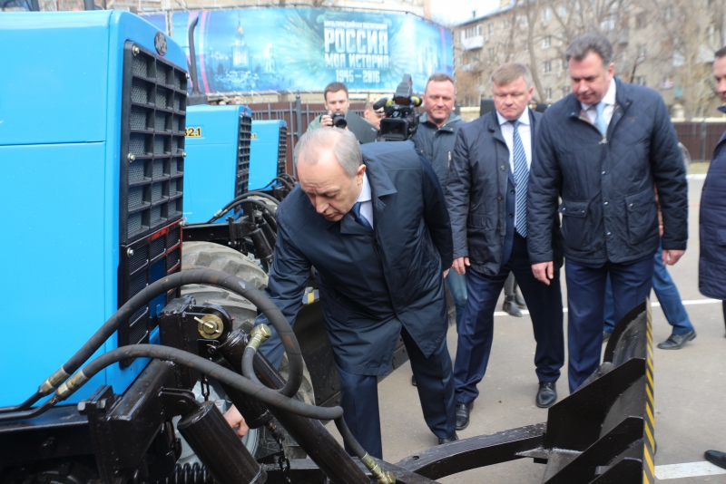 После этого Радаев и Исаев пообщались с одним из водителей, который получил новый трактор. Мужчина продемонстрировал, как работает насадка-метла, которая оснащена специальным увлажнителем. Это позволяет убирать тротуары летом и не пылить.