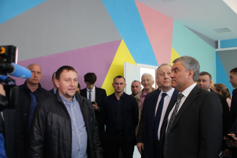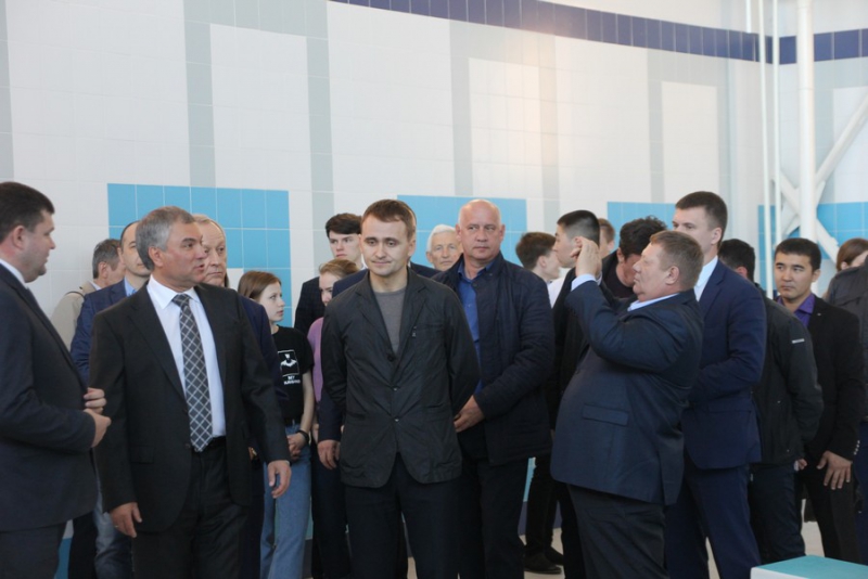 Глава Краснокутского района Дмитрий Уполовников провел для Вячеслава Володина экскурсию по зданию. Он показал спортивные залы: один большой для игры в футбол, баскетбол и волейбол и два малых (для аэробики и занятий по борьбе).
