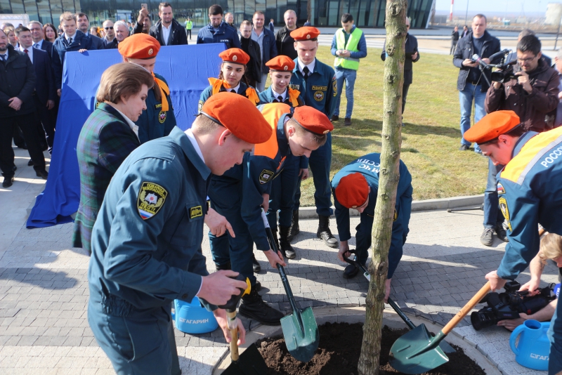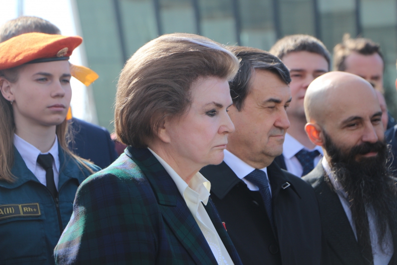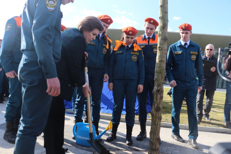 Торжественное мероприятие приурочено ко Дню космонавтики. Терешковой предложили посадить первое дерево на аллее, помогали ей студенты Гагаринского колледжа.