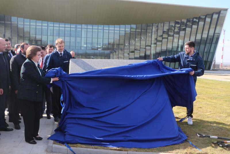 На металлической табличке написано, что она заложена «в честь Дня космонавтики в год открытия аэропортового корпуса «Гагарин» Героем Советского Союза, первой женщиной-космонавтом Валентиной Владимировной Терешковой».