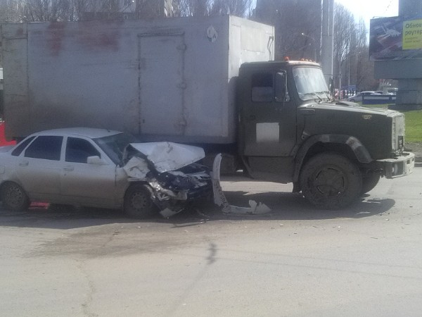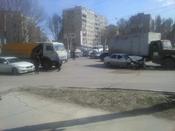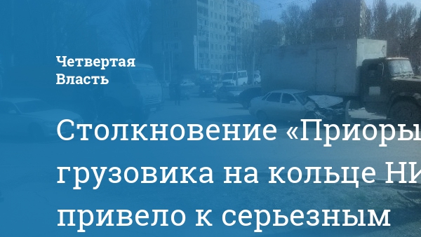 Как следует из опубликованных снимков, авария произошла на кольце НИИ на повороте в сторону центра города. У автомобиля марки «Лада» (вероятно, модель «Приора») серьезно повреждена передняя часть – капот, бампер, передние крылья. По всей видимости, «Приора» врезалась в «ЗИЛ» с будкой.