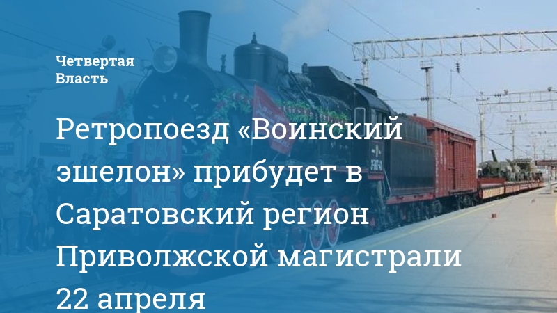 Ретропоезд «Воинский эшелон» начинает свое курсирование по Саратовскому региону Приволжской железной дороги. Первым из городов Саратовской губернии, который увидит этот специальный историко-патриотический проект, станет Аткарск. На железнодорожный вокзал Аткарска «Воинский эшелон» придет в 09:50 22 апреля.