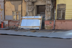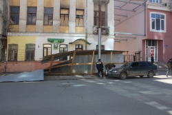 Сегодня, 17 апреля, в центре Саратова упал забор, ограждающий аварийный дом Яхимовича на улице Советской. По имеющейся информации, упавшее ограждение повредило припаркованную иномарку.