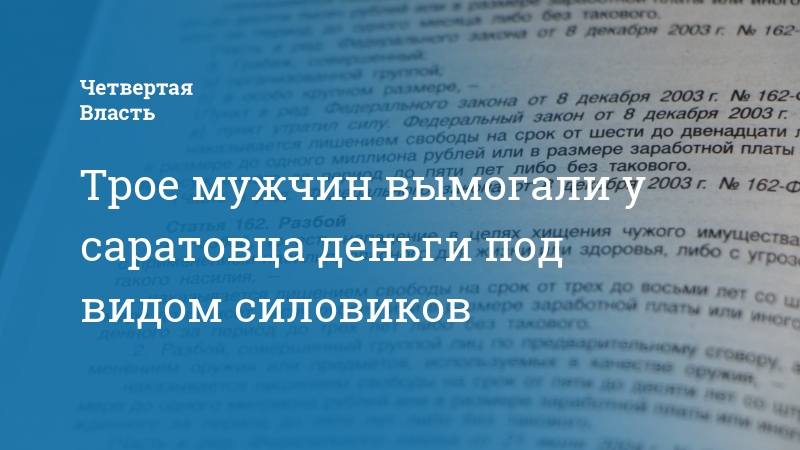 Трое мужчин вымогали у саратовца деньги под видом силовиков