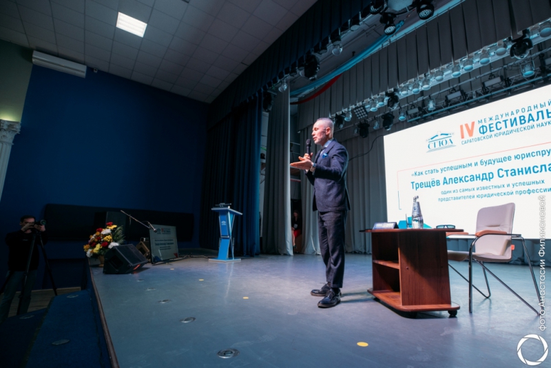 Перед началом работы основных площадок в СГЮА состоялся образовательный тренинг «О будущем юриспруденции и как стать успешным», который провел известный российский юрист Александр Трещёв.