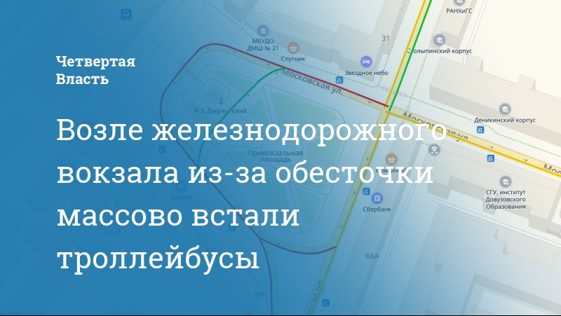 Возле железнодорожного вокзала из-за обесточки массово встали троллейбусы