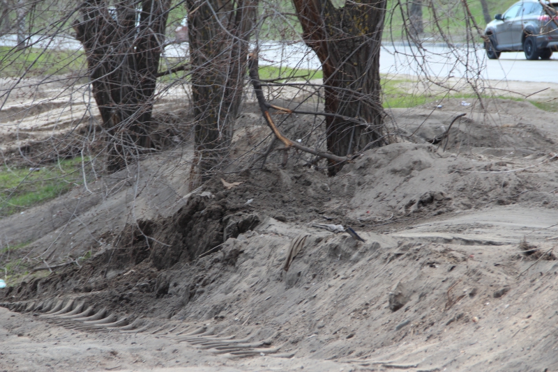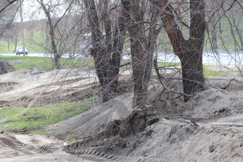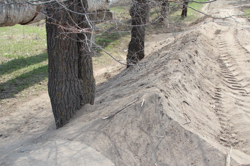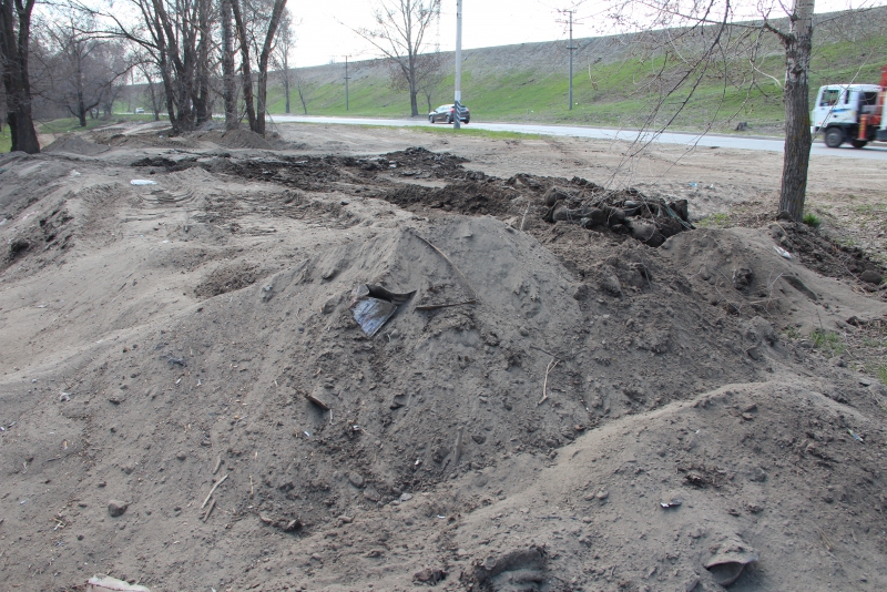 Корреспондент обнаружил, что дорожный смет привозят на охраняемую законом природную зону в черте города. На площади в несколько десятков квадратных метров имеется большая куча – пыль и мелкий мусор. Во время съемки погрузчик разравнивал кучу по территории. Вскоре прибыл еще один «КамАЗ», предположительно, с дорожным сметом. Правда, под камеру сваливать содержимое кузова рабочие не решились.
