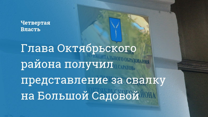 Глава Октябрьского района Саратова Игорь Молчанов получил представление за появление несанкционированной свалки на Большой Садовой. Об этом сегодня, 30 апреля, сообщает прокуратура Саратовской области.
