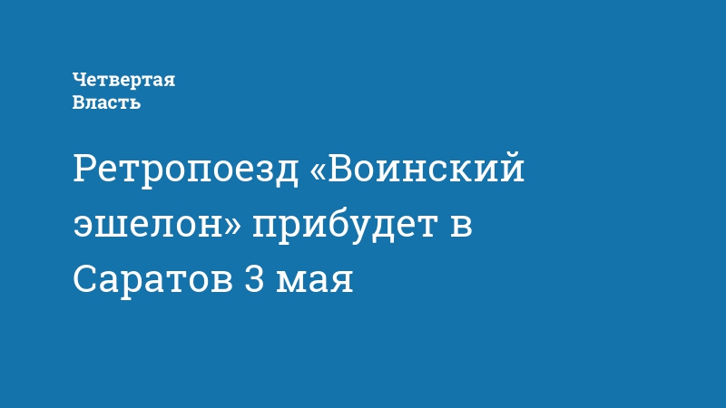 3 мая в Саратов прибудет символ Победы в Великой Отечественной войне – ретропоезд «Воинский эшелон». На его платформах все желающие смогут увидеть легенды отечественного оружия – танк Т-34, «катюшу», бронеавтомобили и дивизионные гаубицы. На перроне саратовского железнодорожного вокзала состоится торжественная встреча Воинского эшелона и концерт. Железнодорожники Приволжской магистрали приглашают всех желающих на встречу ретропоезда 3 мая в 10 часов 20 минут.
