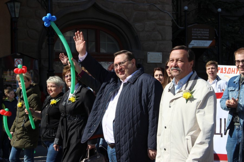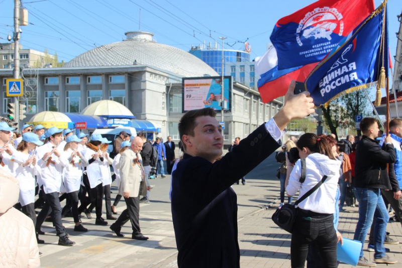 Колонны стартовали в 10.00 от улицы Чапаева, демонстранты прошли по проспекту Кирова до площади перед консерваторией. Возглавляли колонну трудовых коллективов региона, молодежных организаций и общественников губернатор Саратовской области Валерий Радаев, депутат Государственной думы РФ Николай Панков, глава Саратова Михаил Исаев, председатель областной думы Александр Романов, депутат городской думы Дмитрий Кудинов, председатель Общественной палаты Саратовской области Борис Шинчук, чиновники правительства, депутаты и общественники. Некоторые из них пришли с семьями.