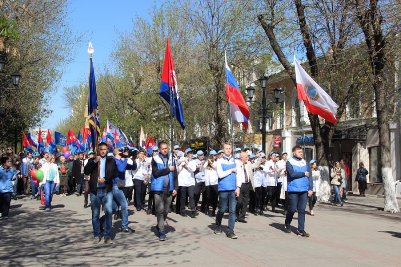 Сегодня в Саратове прошло праздничное шествие профсоюзных организаций в честь Первомая. Оно продолжалось около часа.