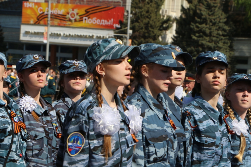 Началось все с объезда колонн. Мишнев и Чалый осмотрели внешний вид участников парада и поздравили с 74-й годовщиной Великой Победы. В ответ военнослужащие, силовики, кадеты и юнармейцы кричали троекратное «Ура!»