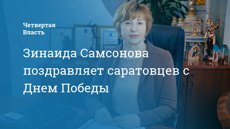 Председатель Совета регионального отделения партии «Справедливая Россия» в Саратовской области, депутат областной думы Зинаида Самсонова поздравила саратовцев с Днем Победы. Она призвала не забывать о ветеранах: