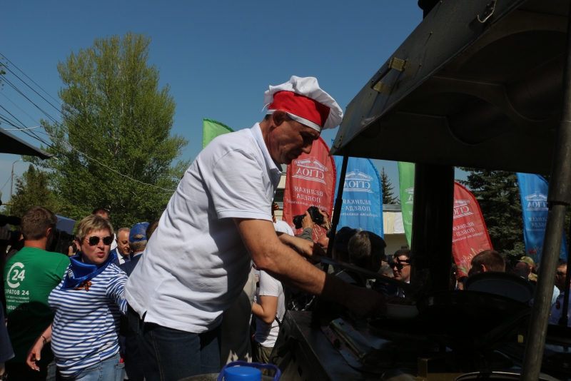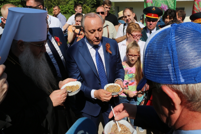 В Парке Победы губернатора Радаева накормили солдатской кашей