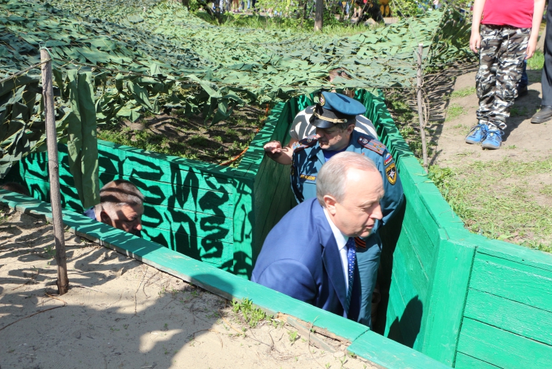 После торжественного митинга-концерта и возложения цветов представители региональной политической элиты прогулялись по парку. По периметру расположено большое количество концертных площадок, на которых исполняют военные песни. Многие горожане привели с собой детей, наряженными в военную форму.