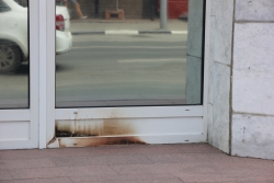 По предварительным сведениям, в 22.28 некий человек бросил бутылку из-под пива с горючим веществом в здание на улице Максима Горького, 44. Силами охраны удалось не допустить распространение огня, пламя потушили сразу. Площадь возгорания составила всего 0,5 метров.
