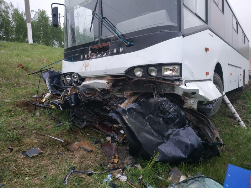 Водитель легковушки и его 34-летний пассажир от полученных травм скончались на месте. В автобусе находились 25 человек, никто из них не пострадал.