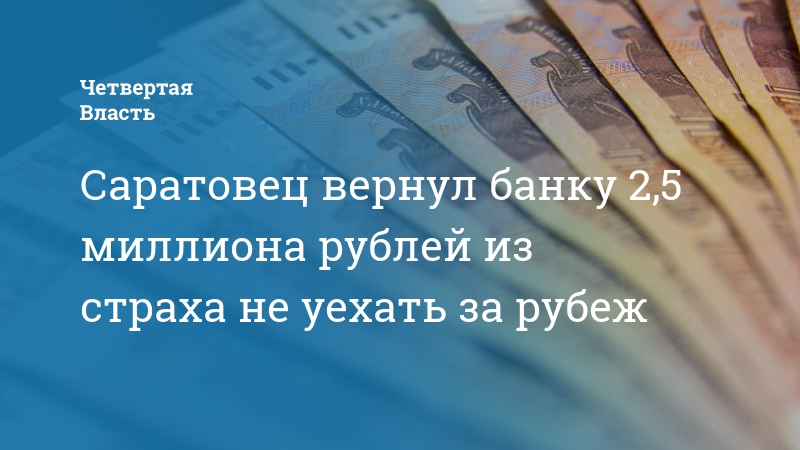 Саратовец вернул банку 2,5 миллиона рублей из страха не уехать за рубеж