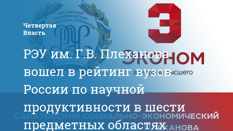 РЭУ им. Г.В. Плеханова вошел в рейтинг вузов России по научной продуктивности в шести предметных областях