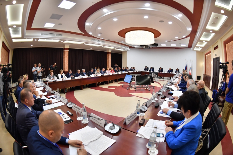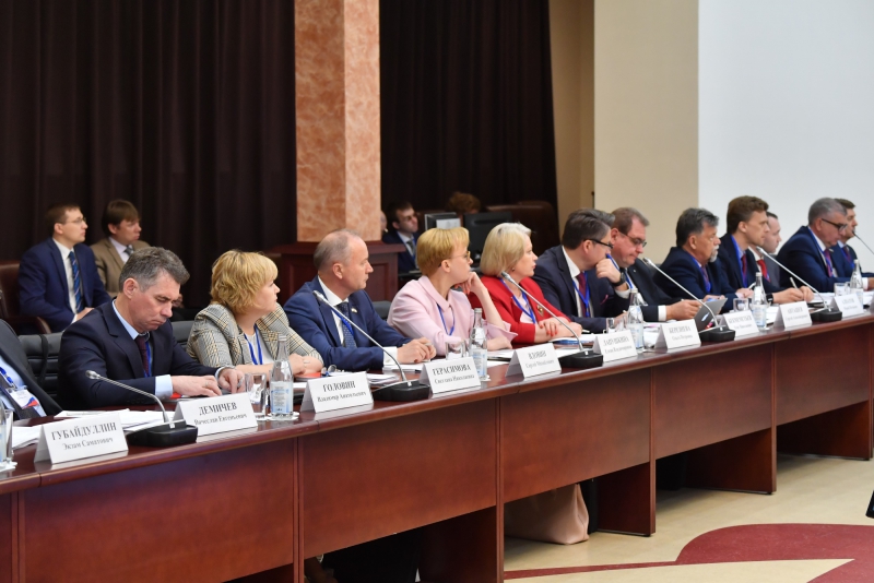 Собравшиеся обсуждают вопросы совершенствования территориальной организации местного самоуправления и межмуниципального взаимодействия, повышения эффективности вопросов местного значения, в том числе в сфере предоставления жилищно-коммунальных услуг, обращения с твердыми бытовыми отходами.