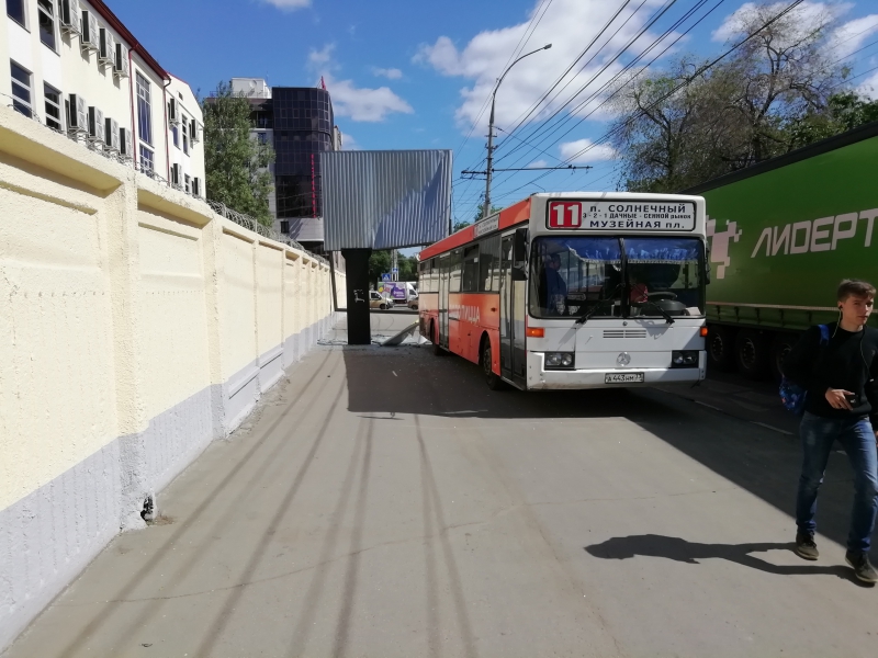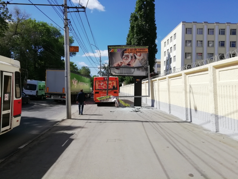 Сегодня, 20 мая, в центре Саратова автобус повредил рекламный щит, расположенный возле военного Краснознаменного института. Об этом сообщили очевидцы в группе «Типичный Саратов» соцсети «ВКонтакте».