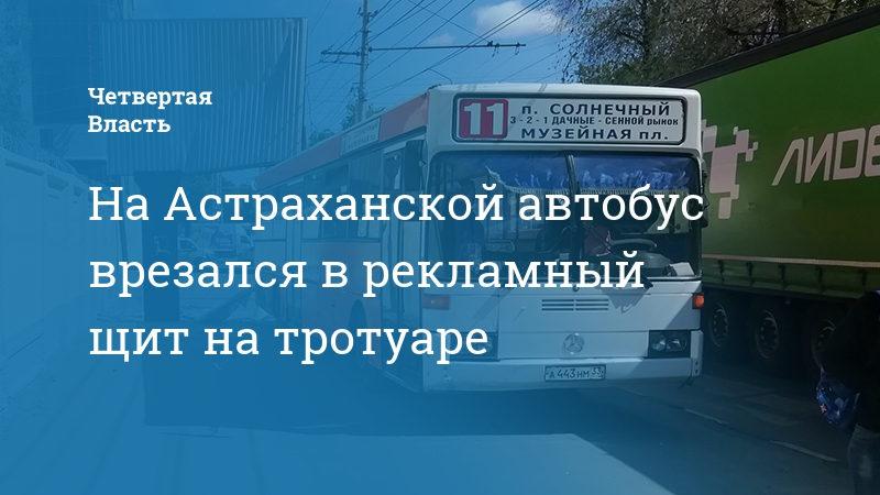 На Астраханской автобус врезался в рекламный щит на тротуаре