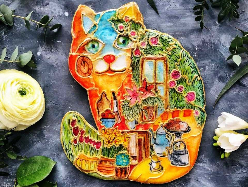 «У меня авторский рецепт теста, к которому довольно долго шла. Пробовала много разных рецептов пряничного теста, которые находятся в открытом доступе, приобретала платные рецепты, результат устраивал не полностью. Методом проб и ошибок вывела собственный рецепт самых вкусных и ароматных пряников. Использую только натуральные ингредиенты высокого качества. Фермерский мёд (гречишный или разнотравье), сливочное масло, богатый букет пряностей: имбирь, мускатный орех, корица, гвоздика, кардамон, свежеснятая цедра апельсина. Именно мед и пряности являются природными консервантами, благодаря им пряники имеют довольно большой срок хранения - 6 месяцев. Пряник для конкурса создавался в общей сложности 4 дня, форма пряника нестандартная, тесто вырезается вручную. После выпечки наносится заливочная белково-сахарная глазурь (айсинг) и остаётся сохнуть на 12 часов. Затем идёт процесс переноса рисунка и роспись пищевыми красителями. Следующий этап - нанесение контуров будущего витража и просушка. Следующий этап: заливка каждой полученной ячейки специальной пищевой смеси для витражного покрытия. Просушка занимает 2 суток. И финальные штрихи: окрашивание контуров витражных окошек пищевым золотым красителем - кандурином», - рассказала Екатерина Бойко.