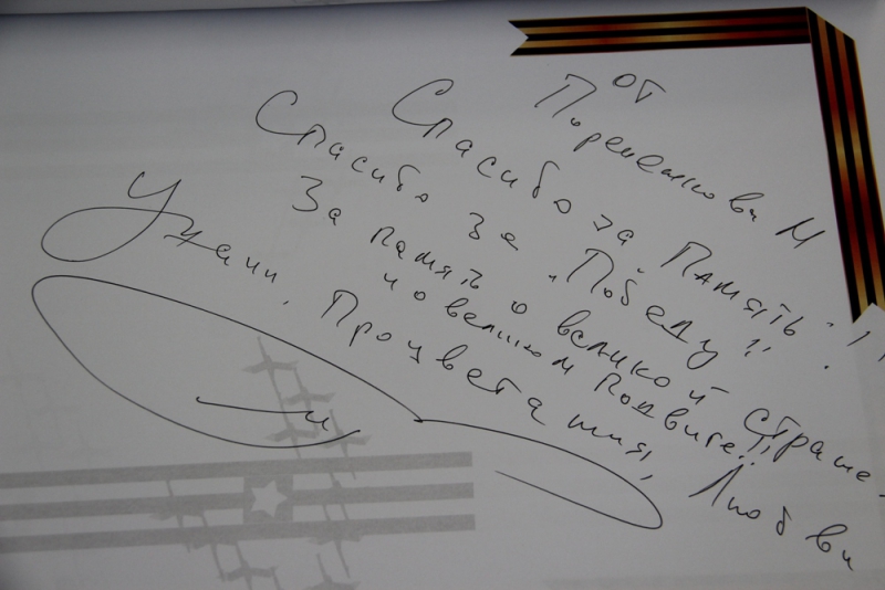 «Спасибо за Память! Спасибо за Победу! За память о великой стране и о великом подвиге!! Удачи. Процветания. Любви».