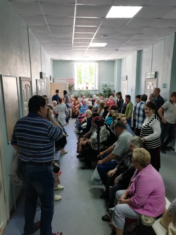 По его словам, сейчас в этом здании проводится ремонт, поэтому часть врачей временно переместили в другое крыло. Таким образом, те граждане на фотографии на самом деле ожидали приема к эндокринологу, хирургу, неврологу, инфекционисту и т.д.