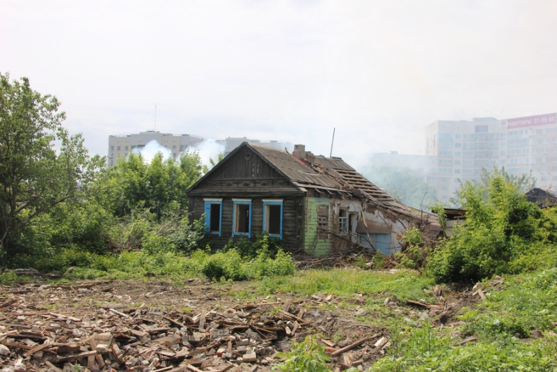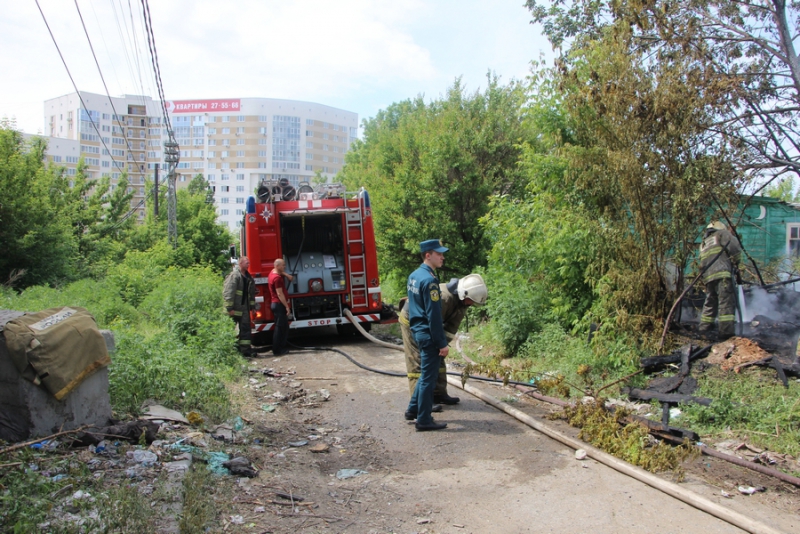 В районе Славянской площади в Саратове на улице Хвесина горит одноэтажный деревянный расселенный дом №3.