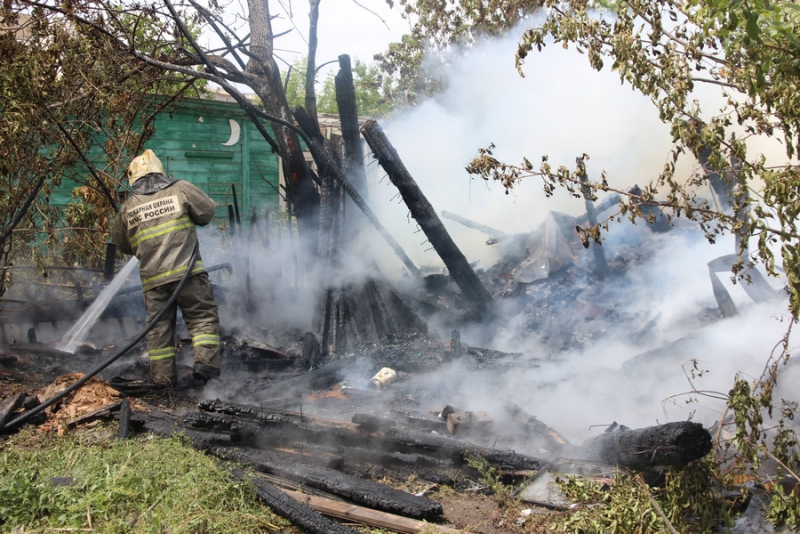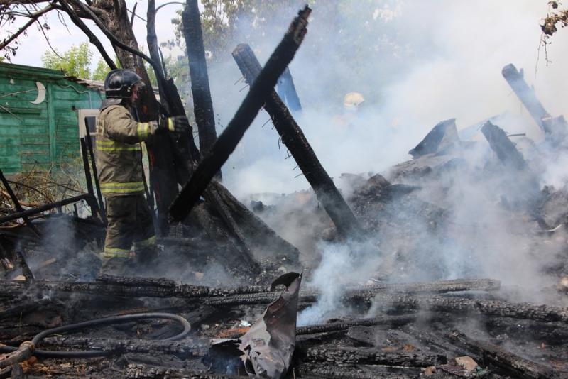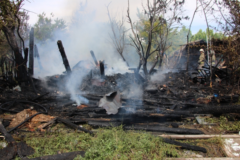 На месте работают 2 пожарных расчета. В настоящее время дом практически полностью сгорел.