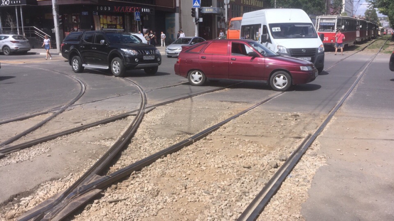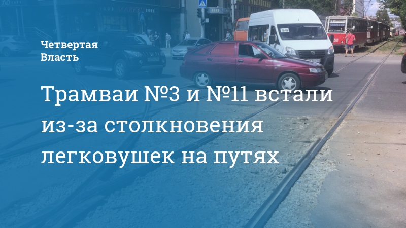Трамваи №3 и №11 встали из-за столкновения легковушек на путях