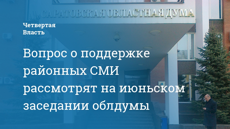 Напомним, депутат Саратовской облдумы, секретарь Союза журналистов РФ Вадим Рогожин неоднократно выходил с предложениями по концептуальной поддержке районных СМИ. Губернатор Валерий Радаев пообещал увеличить поддержку газет, однако в минфине «Четвертой Власти» ответили, что такой вид помощи не относится к первоочередным обязательства бюджета, потому вопрос рассмотрят в течение финснсового года.