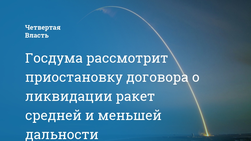 Госдума рассмотрит приостановку договора о ликвидации ракет средней и меньшей дальности