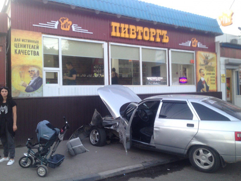У «Макдональдса» легковушка влетела в ларек на остановке