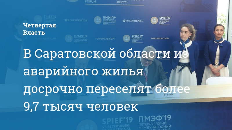 На Петербургском международном экономическом форуме подписано соглашение к договору с Фондом содействия реформированию ЖКХ о предоставлении Саратовской области финансовой поддержки на переселение граждан из аварийного жилья.