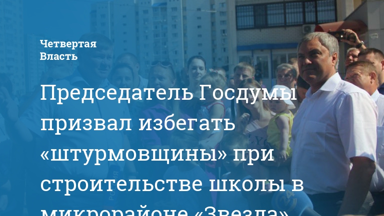 Председатель Госдумы призвал избегать «штурмовщины» при строительстве школы в микрорайоне «Звезда»
