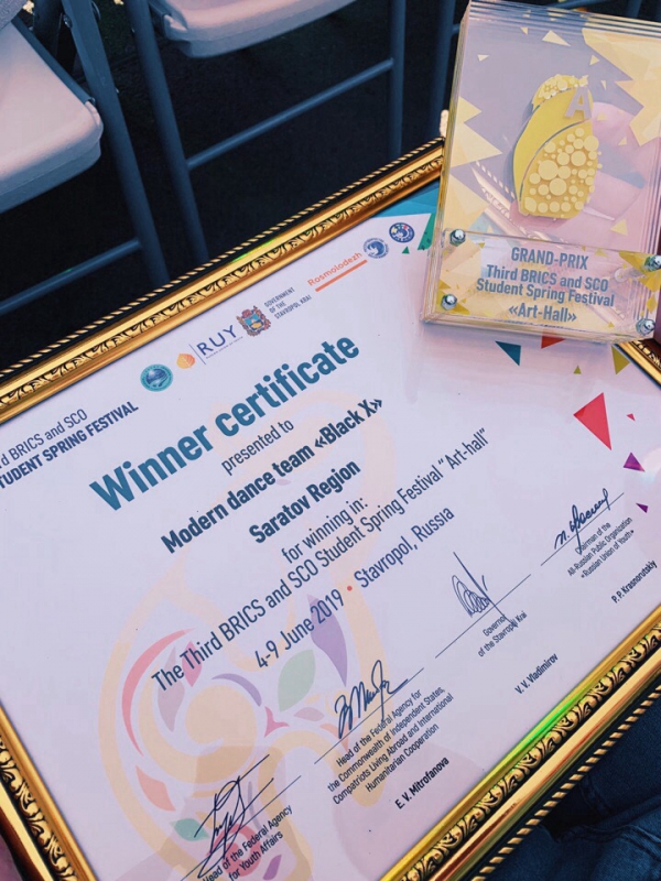 В рамках работы одного из направлений фестиваля «Арт-холл» танцевальный коллектив Саратовской государственной юридической академии Black X был признан лучшим и награжден гран-при.