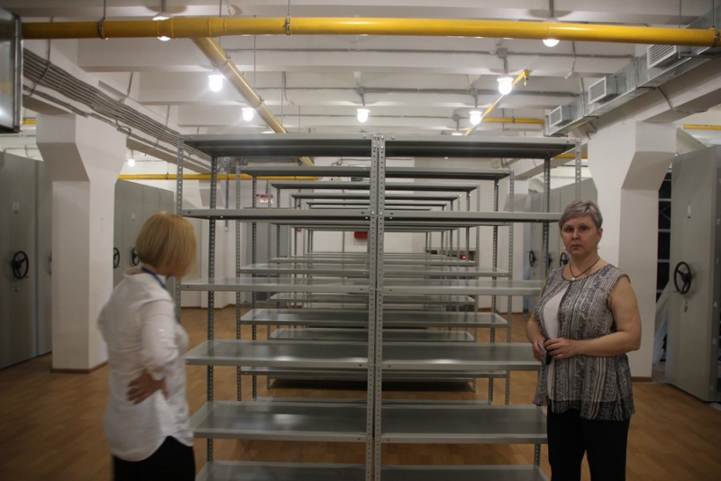 «Несколько лет назад я заходил сюда, и здесь было все пустое. Теперь, как и положено, здесь будут храниться документы. Здесь соблюдается необходимая температура, есть системы сигнализации и пожаротушения. 10 лет архив не принимал документы, а теперь будет. Сможет закрыть все свои долги. Тут стоят российские шкафы для хранения», - рассказал Андрей Артизов.
