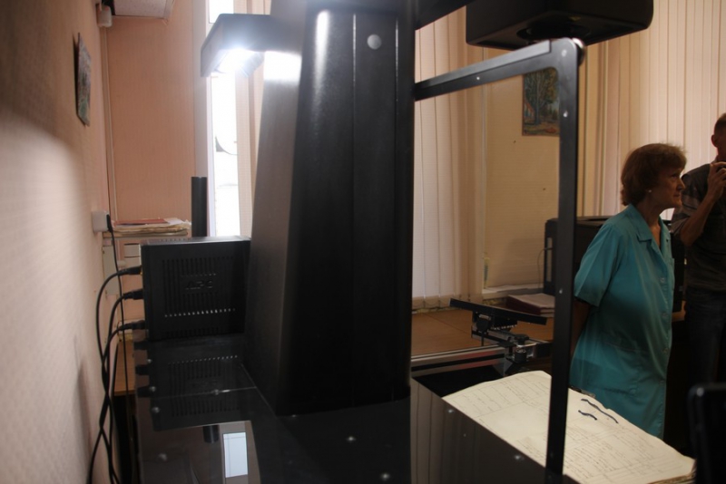 После этого губернатора провели по другим помещениям, показали комнаты и оборудование, на которых производится реставрация книг. Увидел глава региона и технику, которая оцифровывает старинные документы.