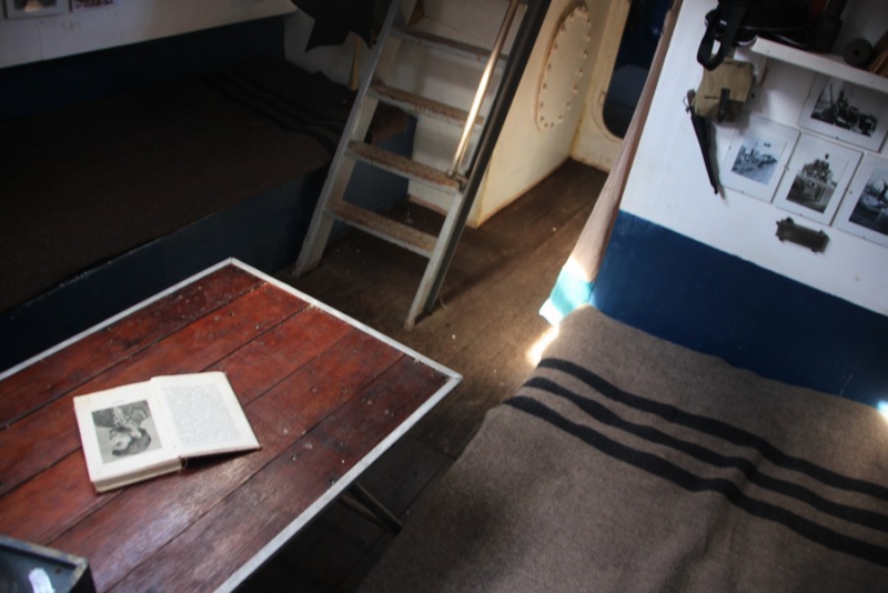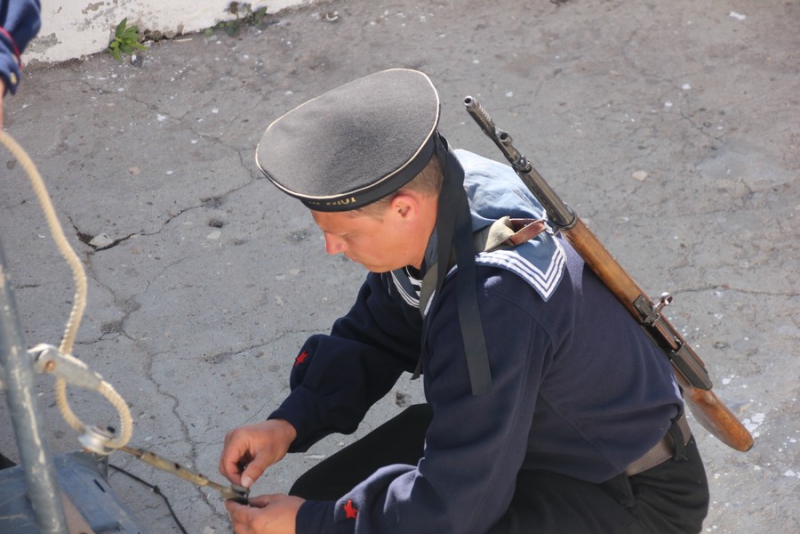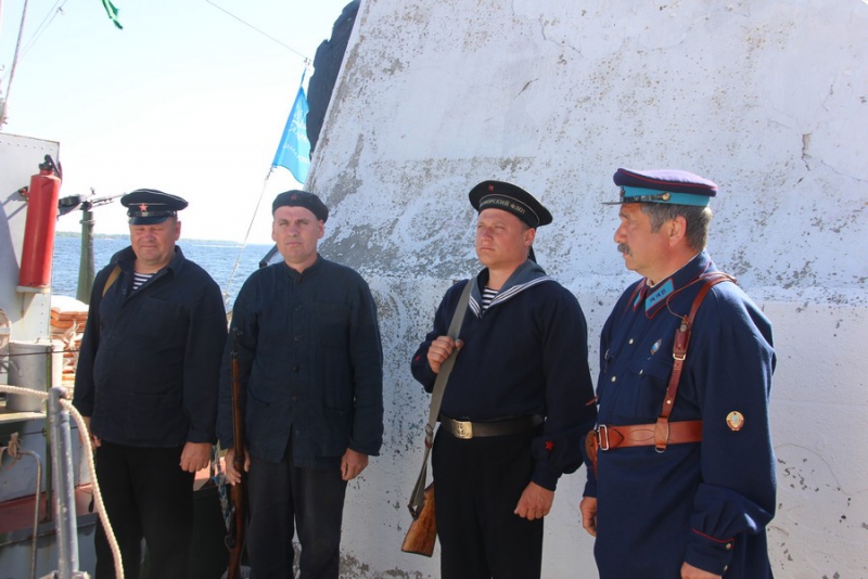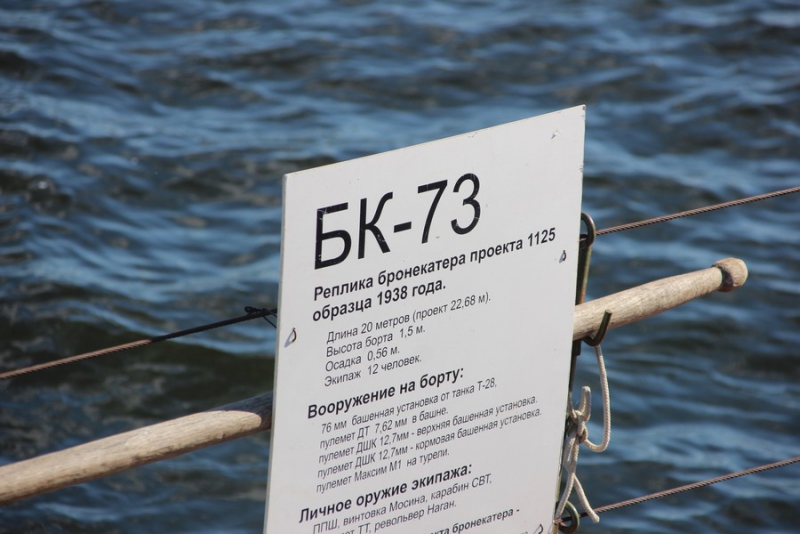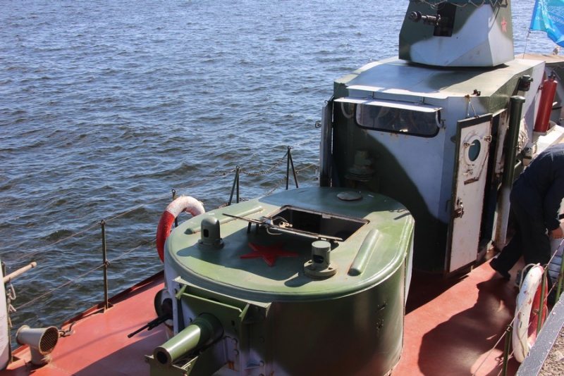 После этого члены экипажа провели для ветеранов экскурсию по судну, воссозданному в 2015 году из элементов погибших бронекатеров. Гости увидели палубу, имитированные пулеметы и артиллерийские орудия, а также капитанскую рубку и кубрик для матросов. На катере воссоздан быт времен войны: о нем свидетельствуют такие атрибуты, как патефон, обмундирование, портрет Сталина и соответствующая мебель.
