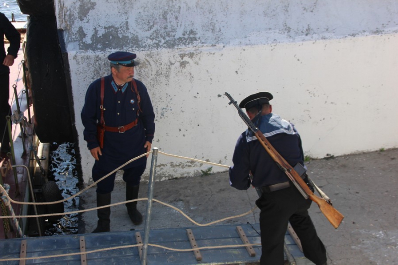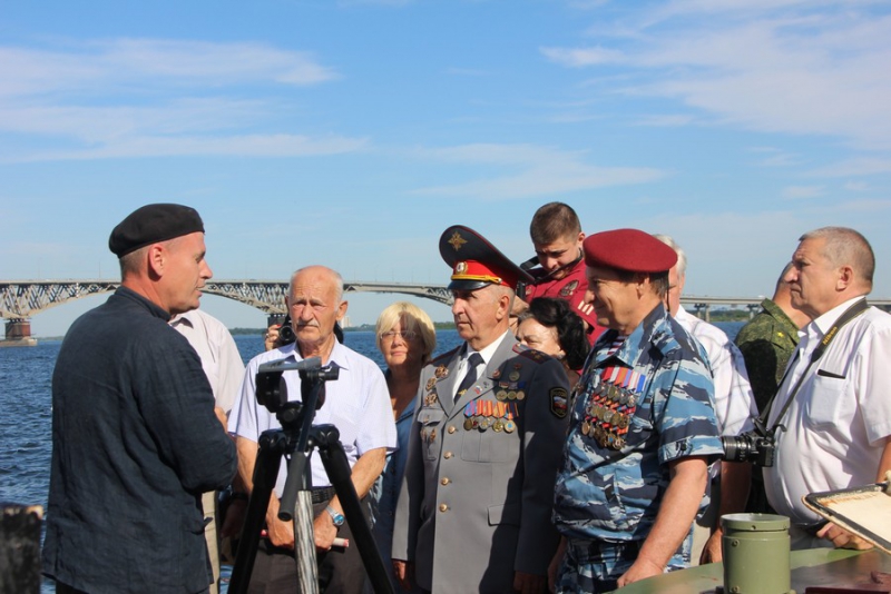 На мероприятии в Саратове присутствовали ветераны органов внутренних дел, ВМФ, члены общественного совета при ГУ МВД по региону, а также юные речники-студенты ГАПОУ СО «Саратовский колледж водного транспорта, строительства и сервиса» и представители министерства внутренней политики и общественных отношений. После того, как бронекатер причалил к берегу, члены команды, одетые в военную форму времен Великой Отечественной войны и «вооруженные» автоматами ППШ и винтовками Мосина, отрапортовали о прибытии. Доклад озвучил руководитель экспедиции исторической реконструкции Сергей Гольдштейн.