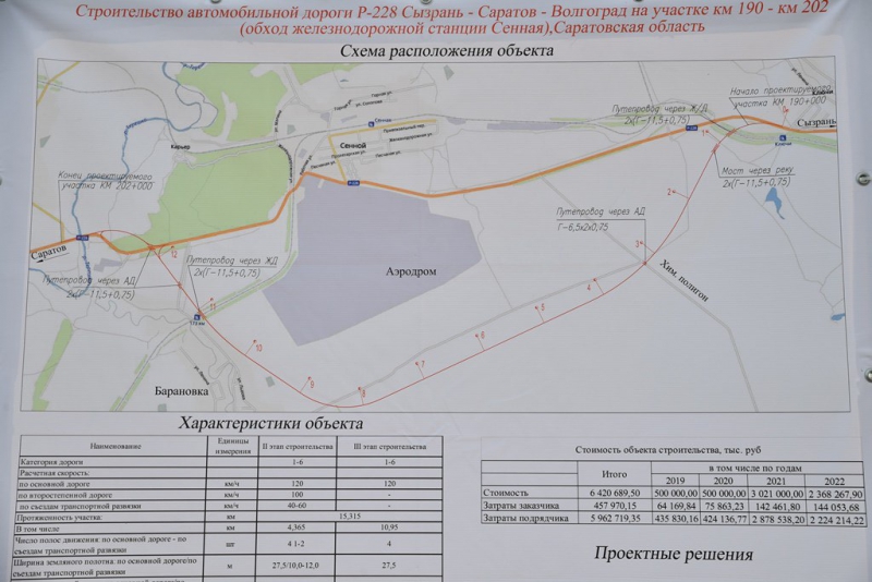 В этом году на объезд Сенной выделено 500 млн рублей. Предполагается, что рабочие проведут переустройство коммуникаций, возведут временные инфраструктурные объекты, обустроят земляное полотно будущей дороги. Помимо нового объезда одновременно будет отремонтировано 60 км дороги Сызрань-Саратов-Волгоград.