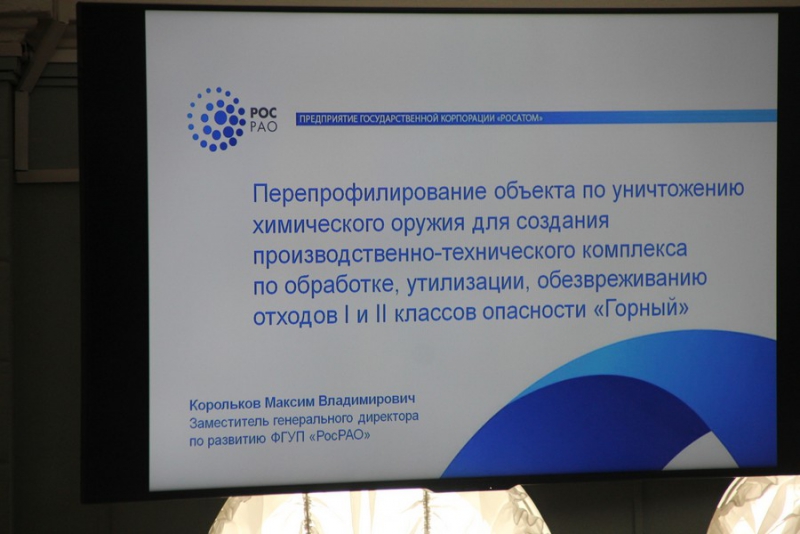 «Речь идет о перепрофилировании объекта по утилизации химического оружия для создания производственно-технического комплекса по обработке, утилизации и обезвреживанию отходов 1 и 2 класса в поселке Горный», - начал свое выступление Корольков.